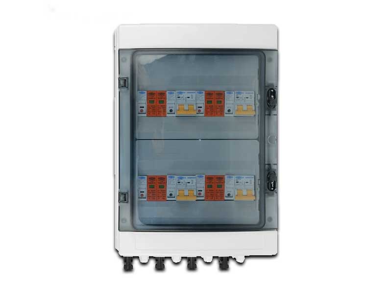PV combiner box consists of all necessary arrestors, fuses, and breakers for 4 strings in and 4 strings out.
